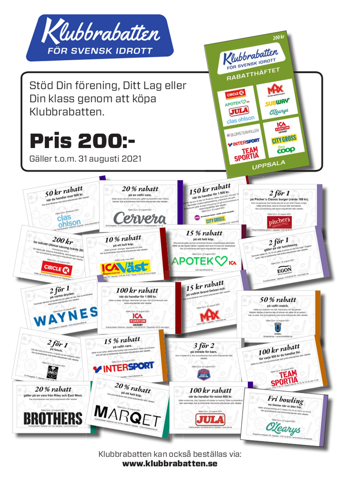 Nu finns klubbrabatten att köpa. Bra erbjudande och ett enkelt sätt att stötta Skuttunge SK. Kontakta gärna någon i dam- och herrlaget eller ansvarige Anette Bergstrand på andersson.bergstrand@telia.se Tack för ert stöd! Skuttunge SK 20 feb 2021 5kommentarer